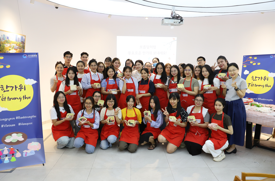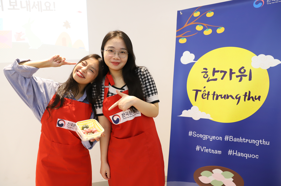 Tết Trung thu năm nay, các bạn học viên của Học viện King Sejong – Trung tâm Văn hóa Hàn Quốc đã có trải nghiệm làm bánh Songpyeon với 2 buổi học ngày 15 và 16 tháng 9. Tại 2 buổi học, các bạn đã được nghe giới thiệu về ngày lễ Chuseok của Hàn Quốc, được biết thêm về các hoạt động mà người Hàn thường làm, các món ăn thường xuyên được ăn vào ngày lễ này, trong đó có Songpyeon. Songpyeon cũng có rất nhiều hình dáng đa dạng, tùy vào truyền thống vùng miền, gia đình cũng như sự khéo léo của người làm ra chiếc bánh, trên tất cả, ý nghĩa của Songpyeon là món bánh ăn cùng người thân với mong muốn cùng nhau sống thật lâu và mạnh khỏe!!